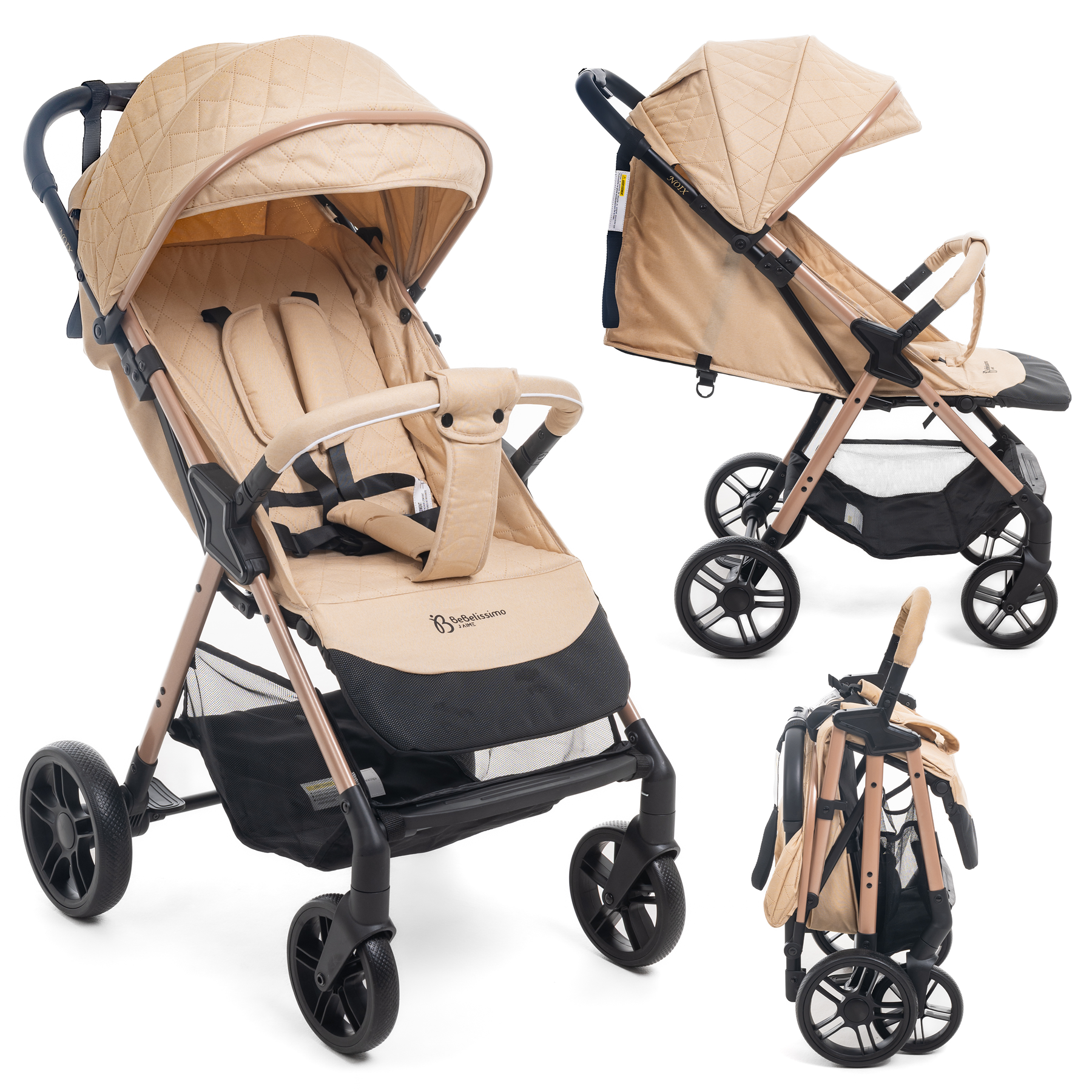 Bebelissimo - Poussette Bébé Canne Ultra Compacte – Légère – Pliage à Une Main – Noix - beige